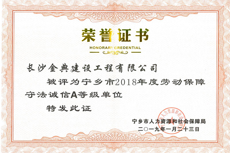 2018年度勞動(dòng)保障守法誠(chéng)信A等級(jí)單位