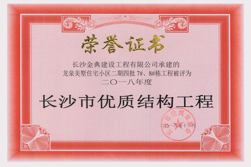龍泉美墅項(xiàng)目二期四批7、8#棟榮獲“長(zhǎng)沙市優(yōu)質(zhì)結(jié)構(gòu)工程”獎(jiǎng)