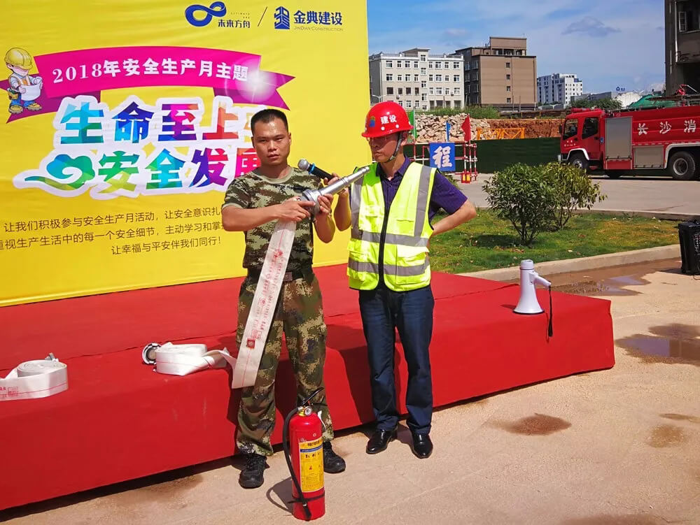 2018年6月27日下午,長沙金典建設(shè)工程有限公司與潤怡集團(tuán)攜手在未來方舟三期項(xiàng)目舉行消防知識培訓(xùn)應(yīng)急預(yù)案演練。整個(gè)演練共分為現(xiàn)場模擬火災(zāi)疏散急救、模擬觸電事故急救二個(gè)過程,歷時(shí)3小時(shí),涉及人員200余人,寧鄉(xiāng)經(jīng)開區(qū)規(guī)劃建設(shè)局質(zhì)安站的相關(guān)領(lǐng)導(dǎo)也蒞臨現(xiàn)場觀摩指導(dǎo)。