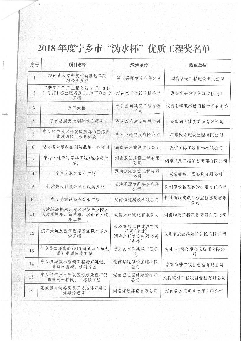 關(guān)于寧鄉(xiāng)市第二屆“溈水杯”優(yōu)質(zhì)工程獎評選結(jié)果的表彰通報